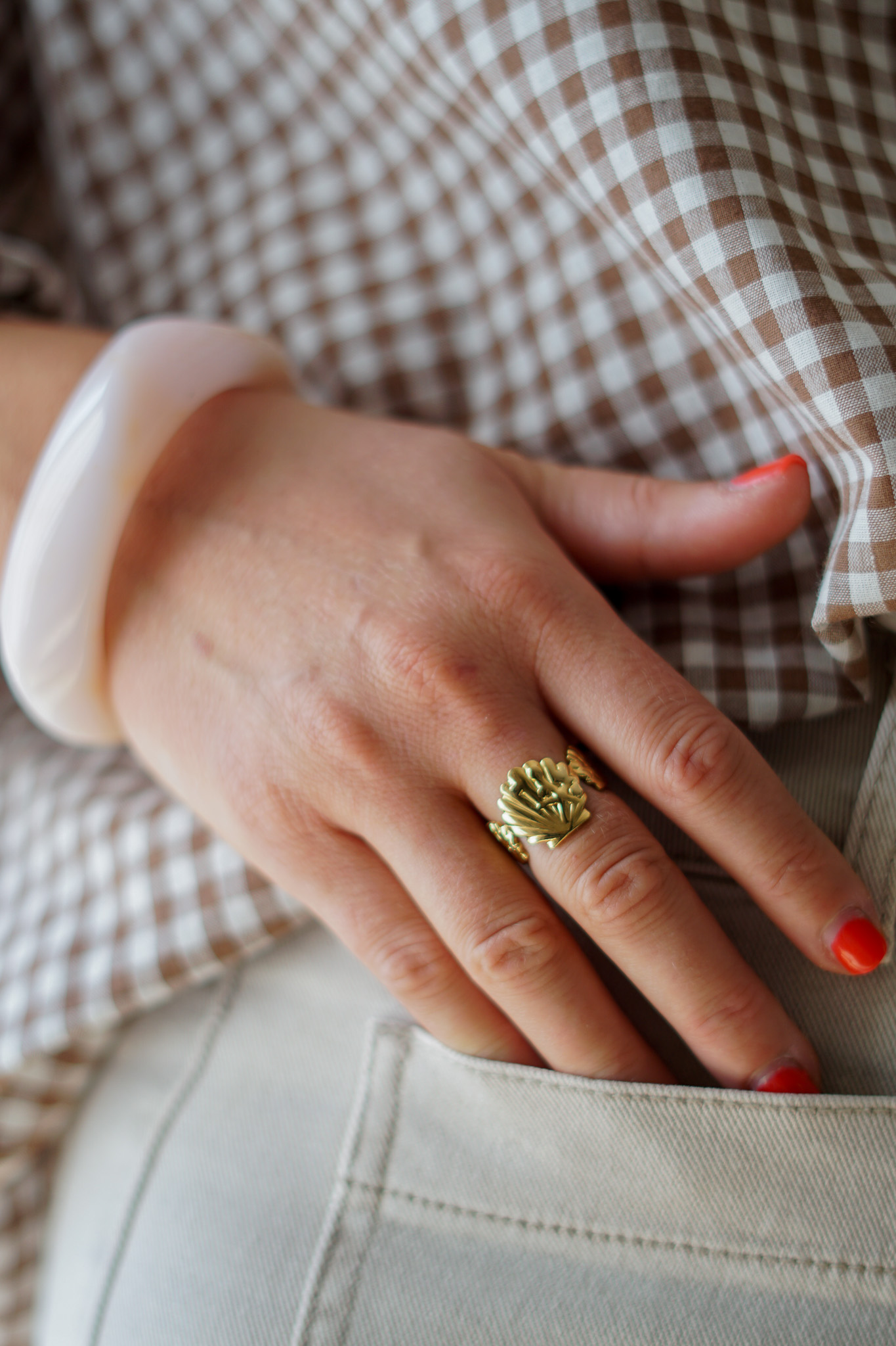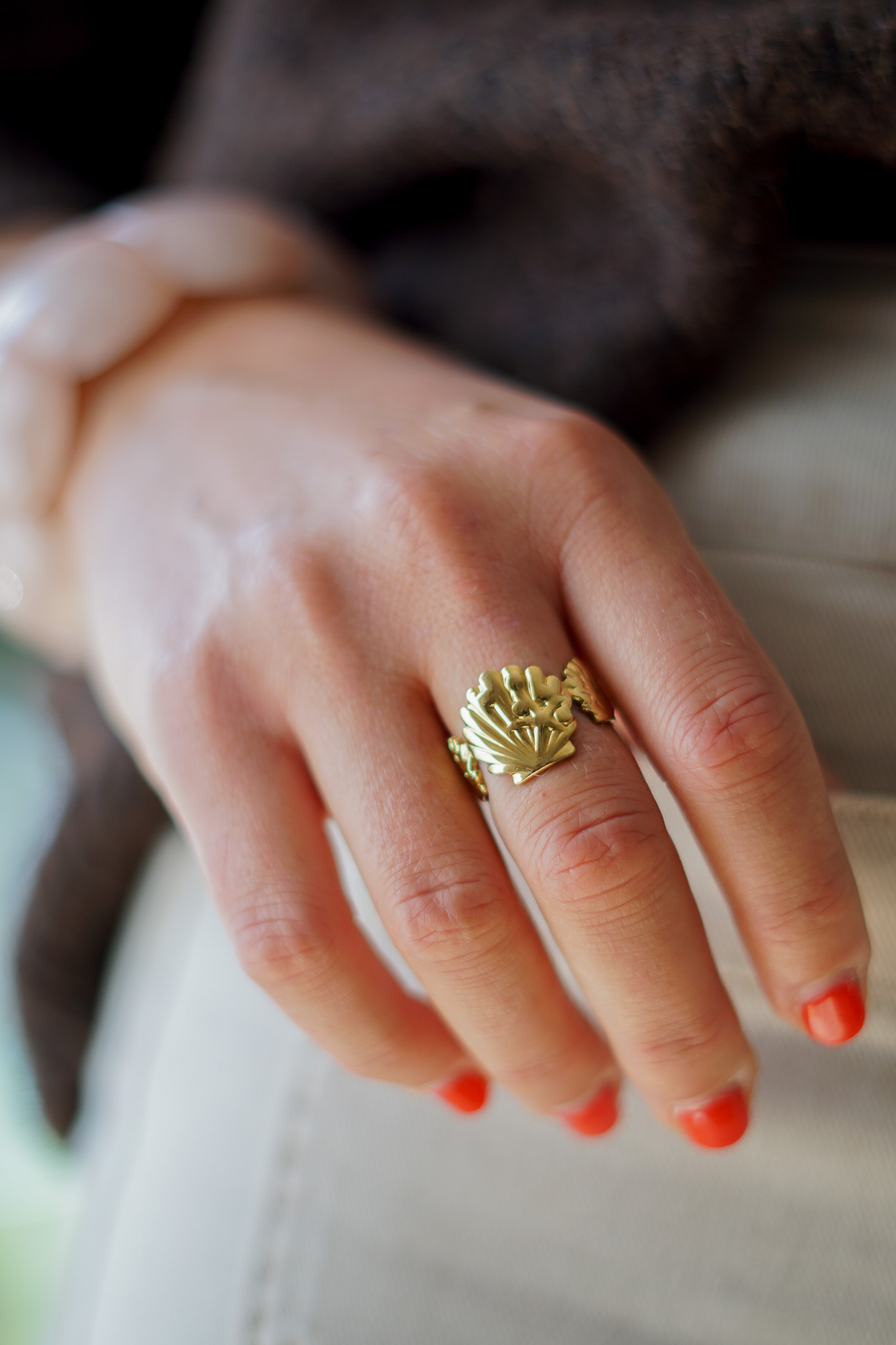 - Bague dorée en forme de 3 St Jacques