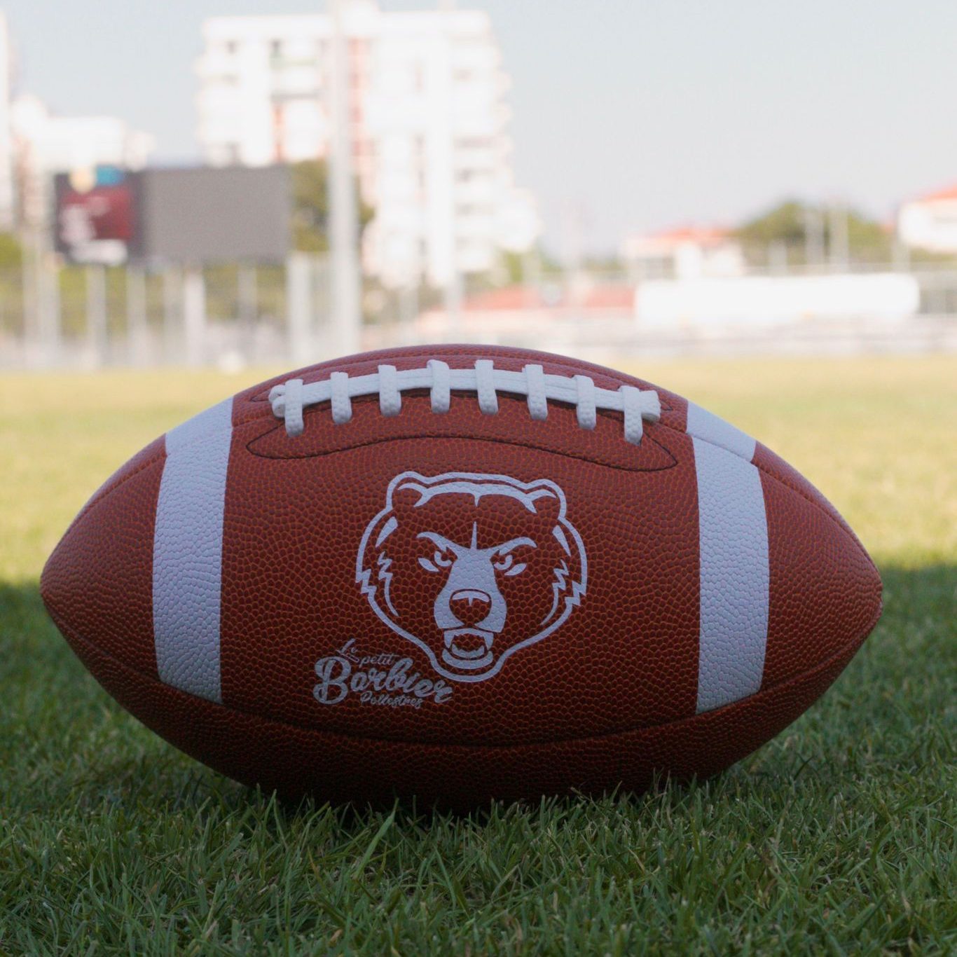 Ballon de football américain taille officielle avec les logos des Grizzlys Catalans et « Le Petit Barbier Pollestres« . Merci à notre partenaire local pour cette belle collaboration ! Édition limitée, idéal pour le jeu ou la collection.