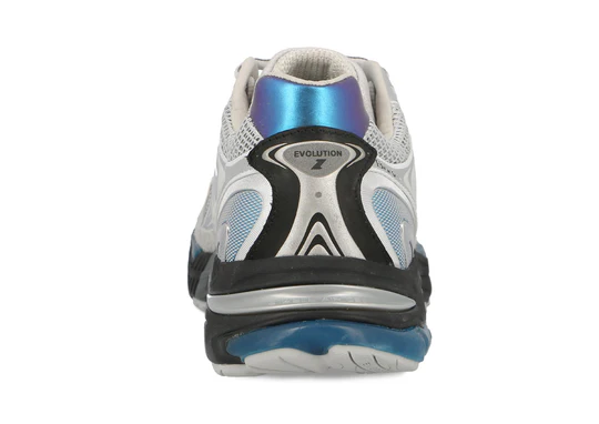 L’Evolution s’inspire du monde de la course à pied. Lancée en 2012, elle est dotée d’une tige en mesh respirant associée à des matériaux techniques, conçus pour allier confort et protection contre les chocs. Cette version associe une maille argentée à des empiècements en éco-cuir argenté et gris, rehaussés de touches bleu glacier et de […]