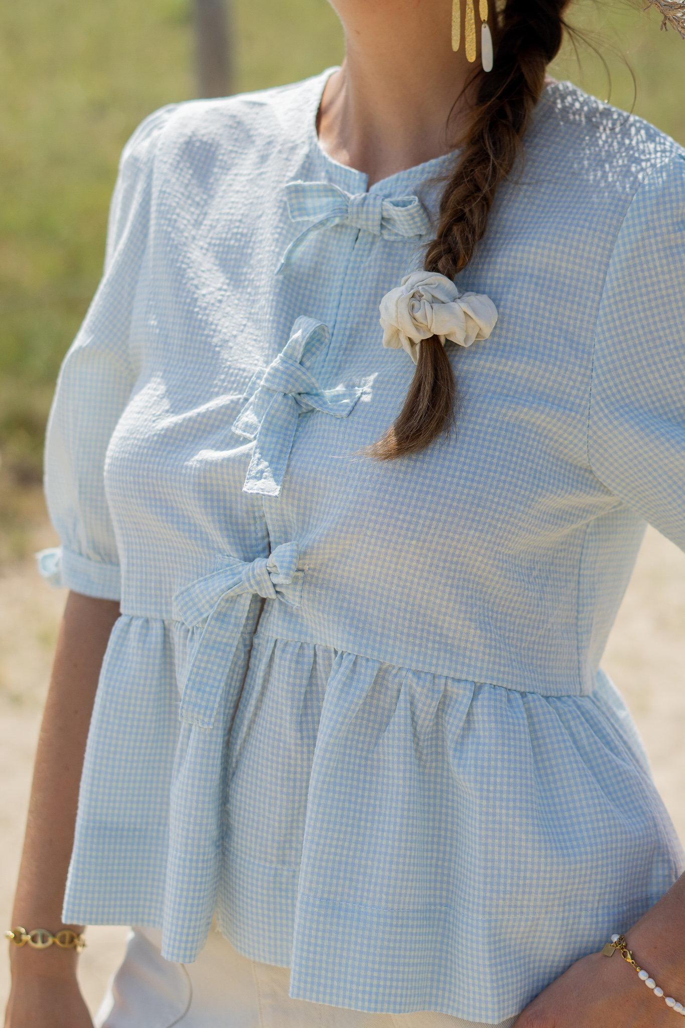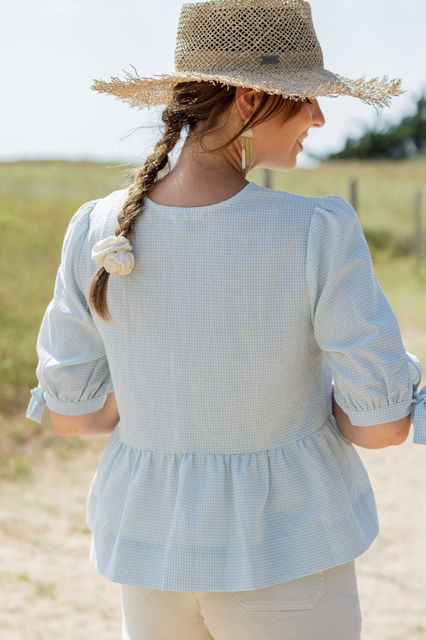 – Manches courtes – Noeuds à nouer à l’avant – Noeud aux manches – Manches légèrement ballons – Non doublée – Légèrement loose et Fluide Le mannequin mesure 1m68 et porte une taille S pour son 36 habituel. Nous vous conseillons de prendre votre taille habituel. COMPOSITION: 100% Coton ENTRETIEN: lavage en machine à 30°C […]