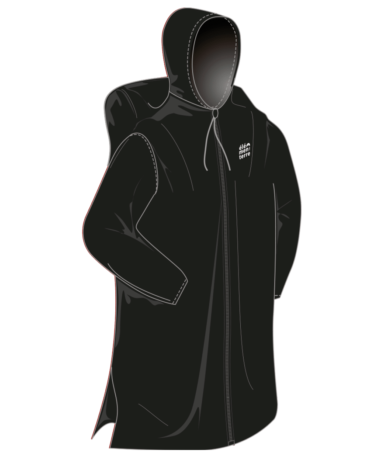 La cape de pluie PELERIN de chez Elementerre, à zip intégral et est à manche longue pour une meilleure protection face à la pluie.