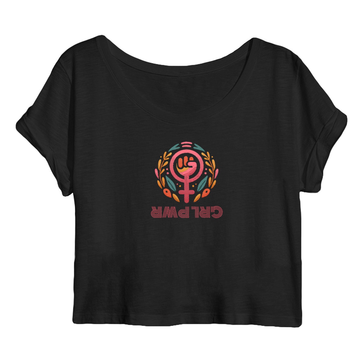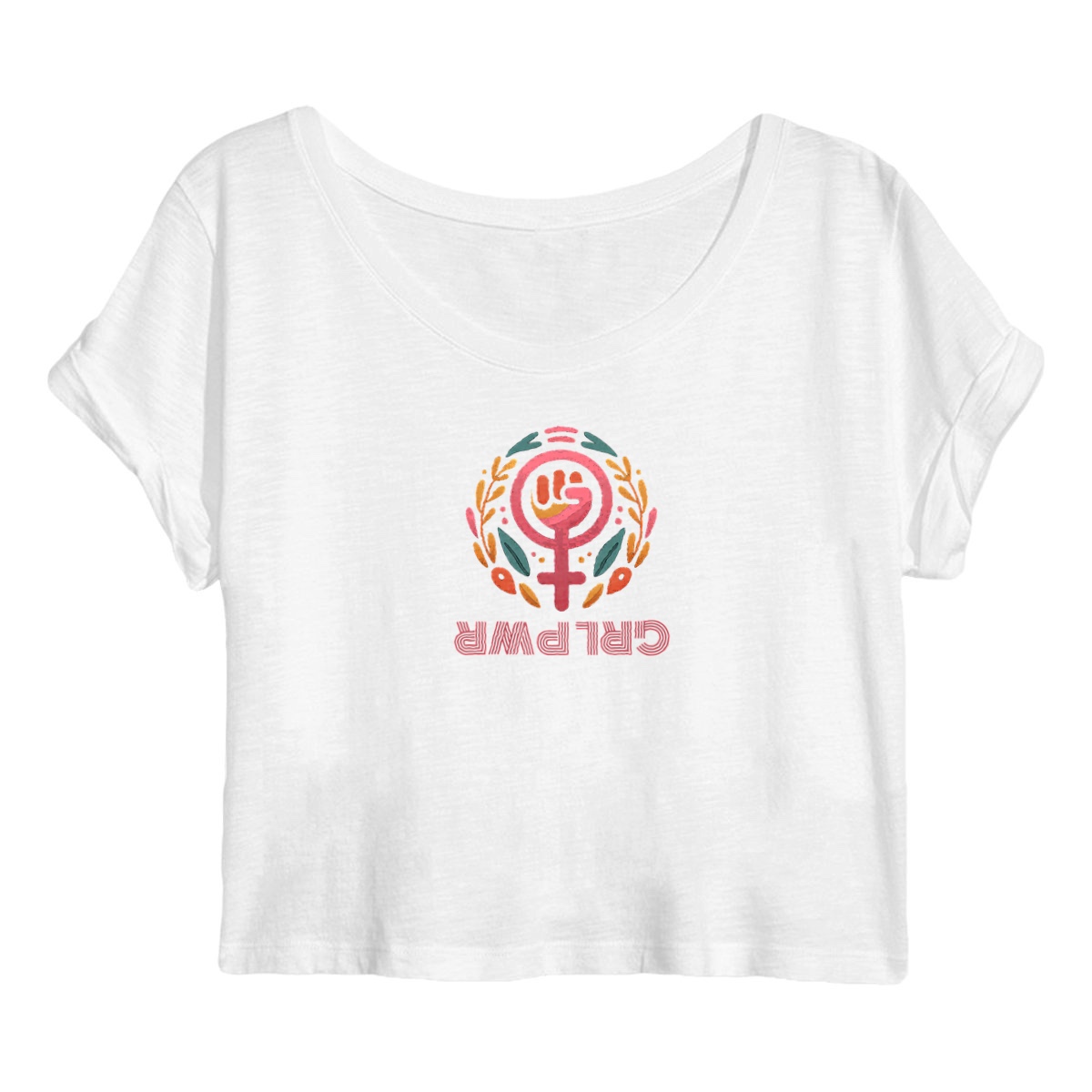 Affirme ton style avec le crop top femme bio Girl Power : un t-shirt féministe éthique, en 100% coton biologique, coupe moderne à manches roulées, message empowerment féminin et emballage 100% sans plastique.