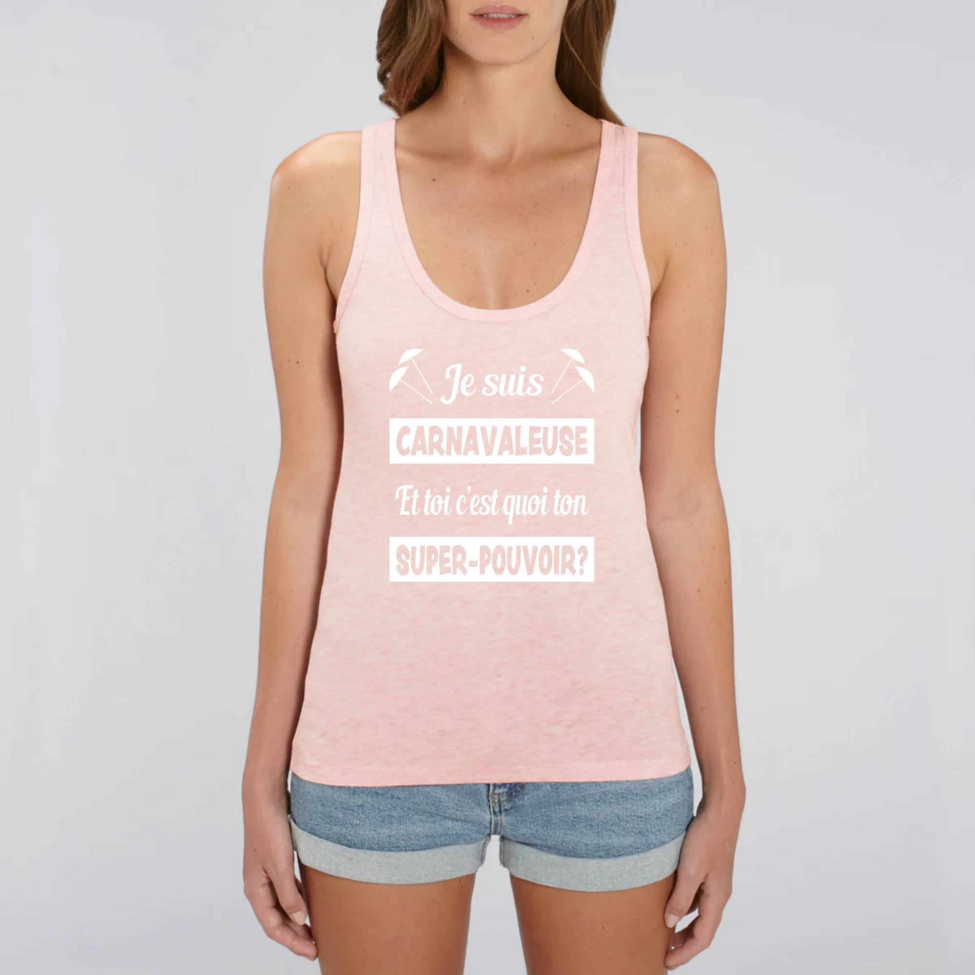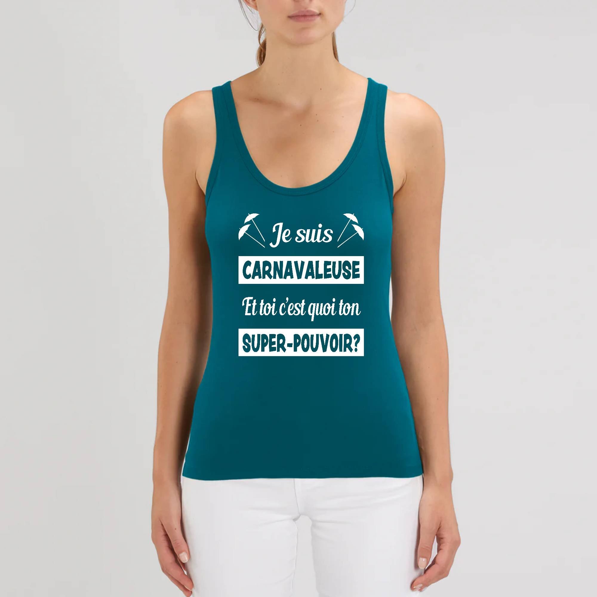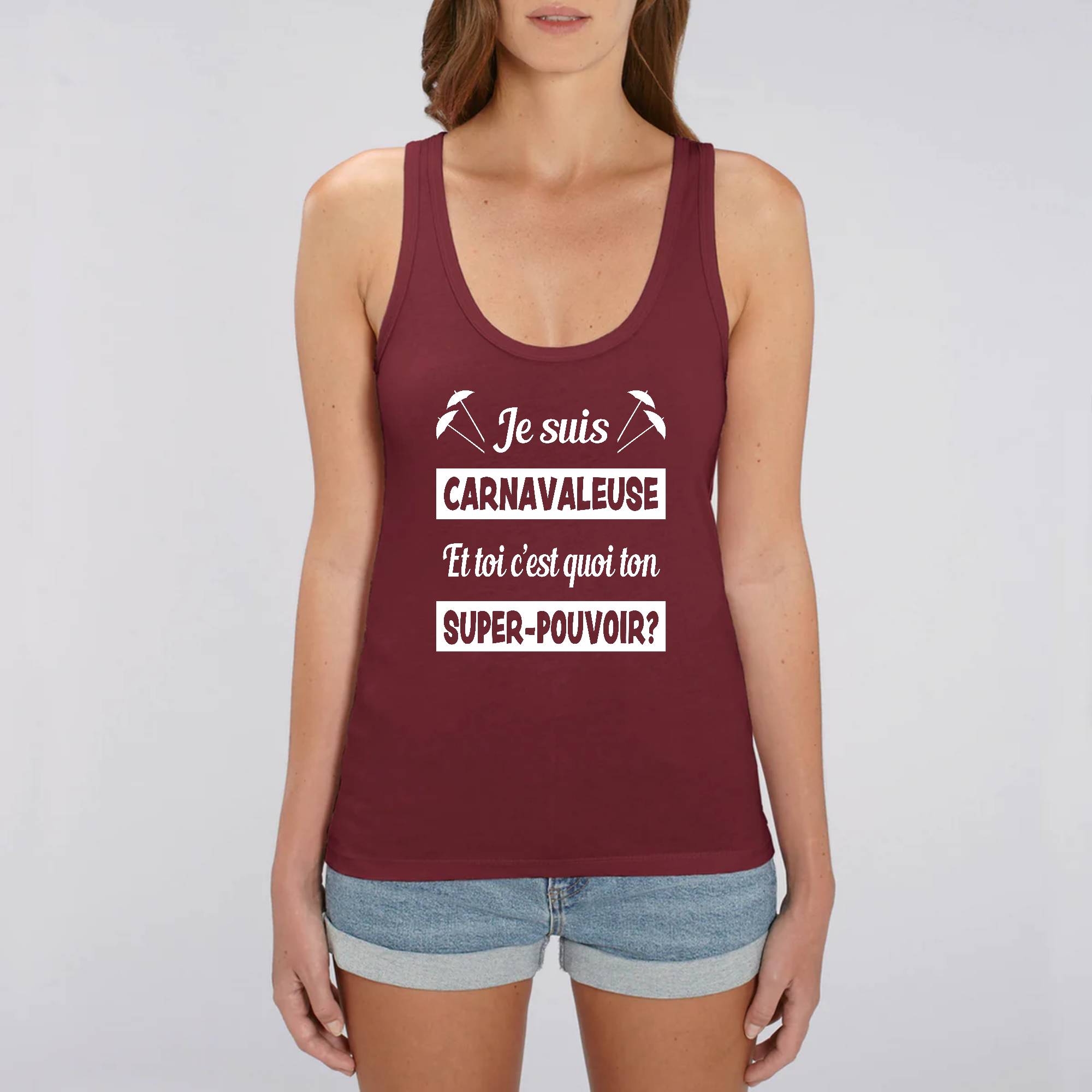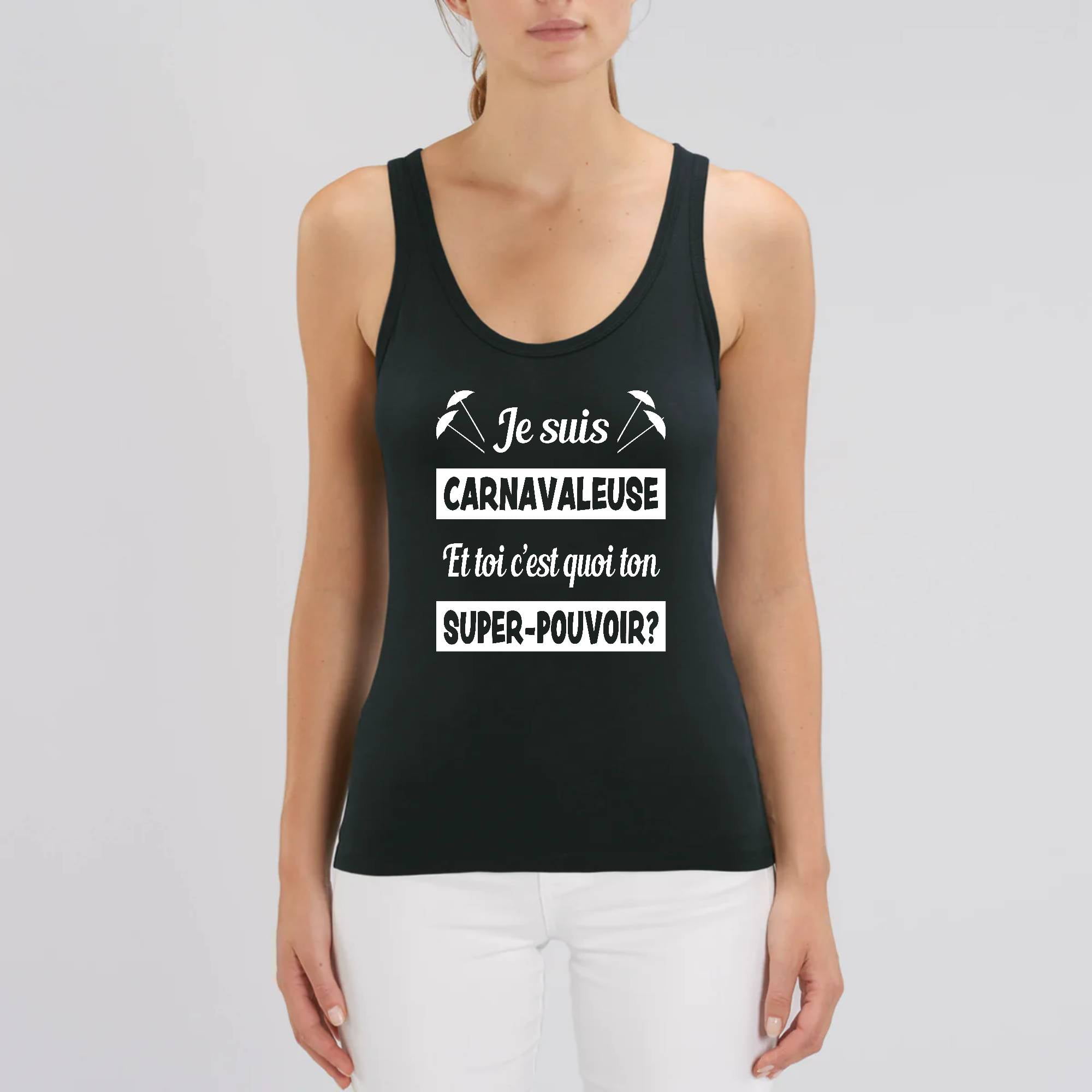 Débardeur Femme – 100% coton Bio 120g/m² – Je suis carnavaleuse et toi c’est quoi ton super-pouvoir?