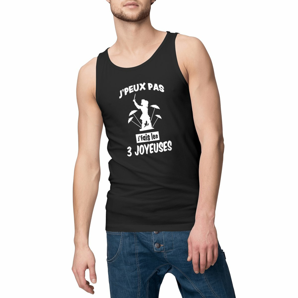 Notre débardeur homme « J’peux pas j’fais les 3 joyeuses », un débardeur premium intemporel et écoresponsable