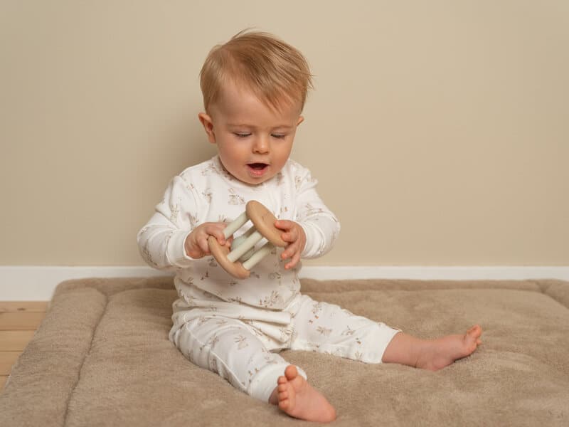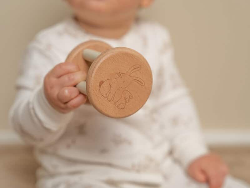 Ce hochet a une petite boule qui roule à l’intérieur dont la clochette émet une jolie sonnerie. Les petits l’adorent et peuvent agripper le hochet facilement grâce à ses petites lattes en bois.