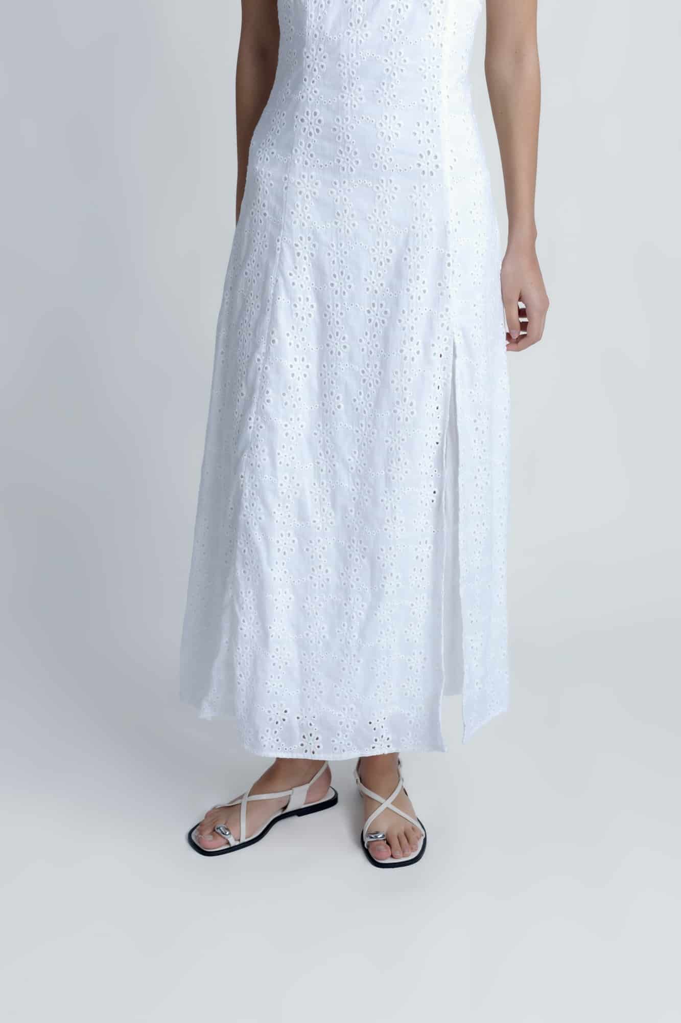 Robe longue broderie anglaise-Blanche