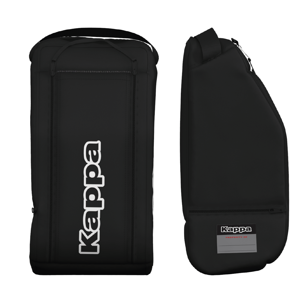 Sac à chaussures 100% polyester 600D Fermeture zippée avec poignée Poche latérale zippée Kappa sur le dessus et sur le côté
