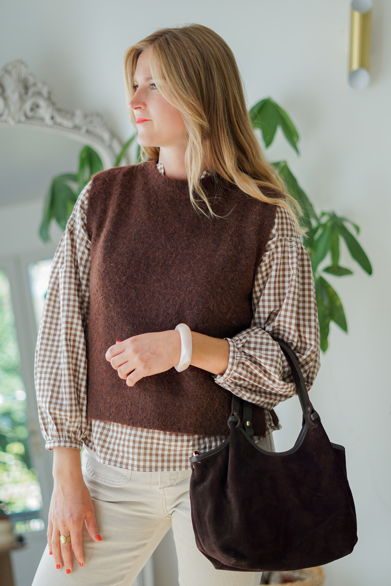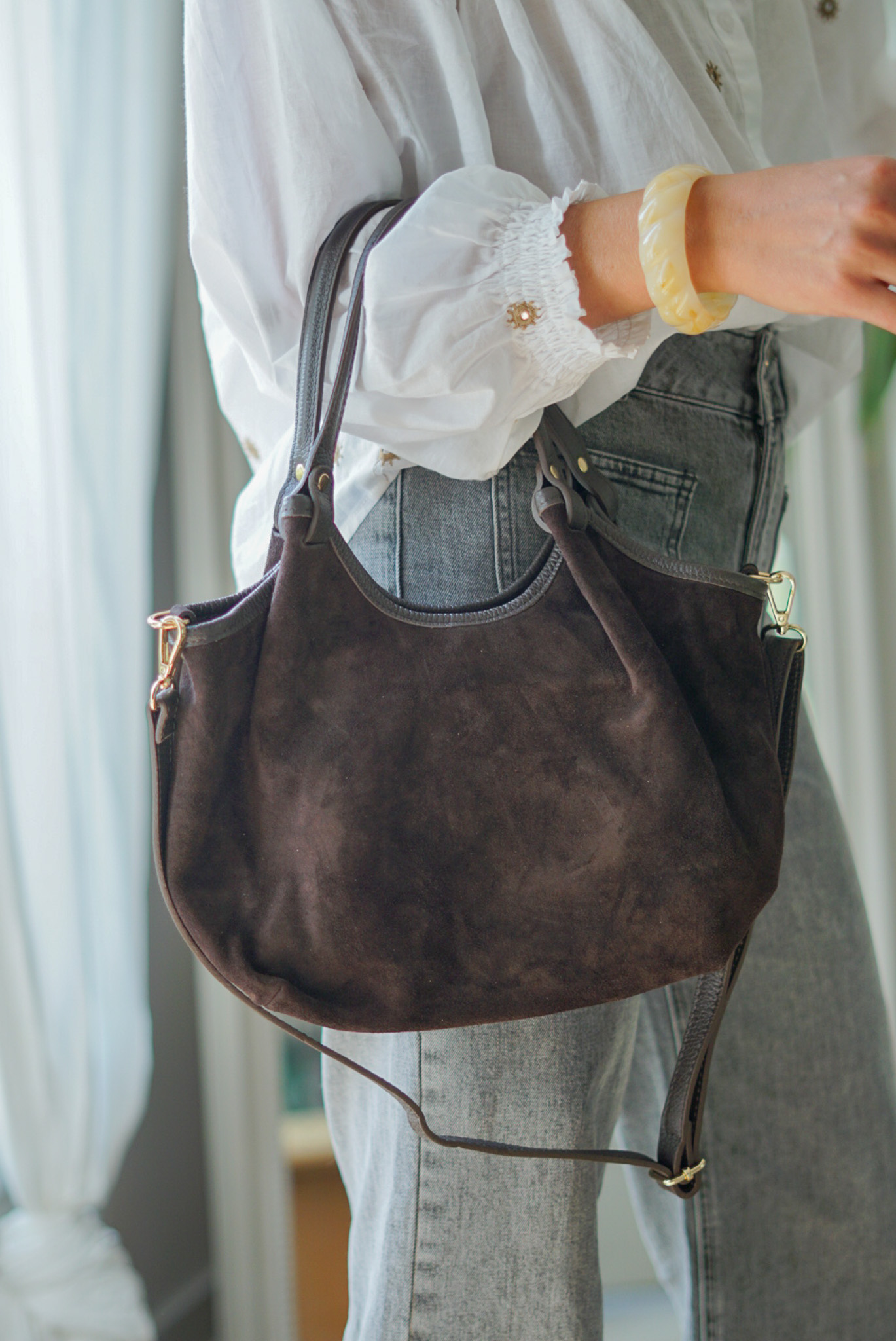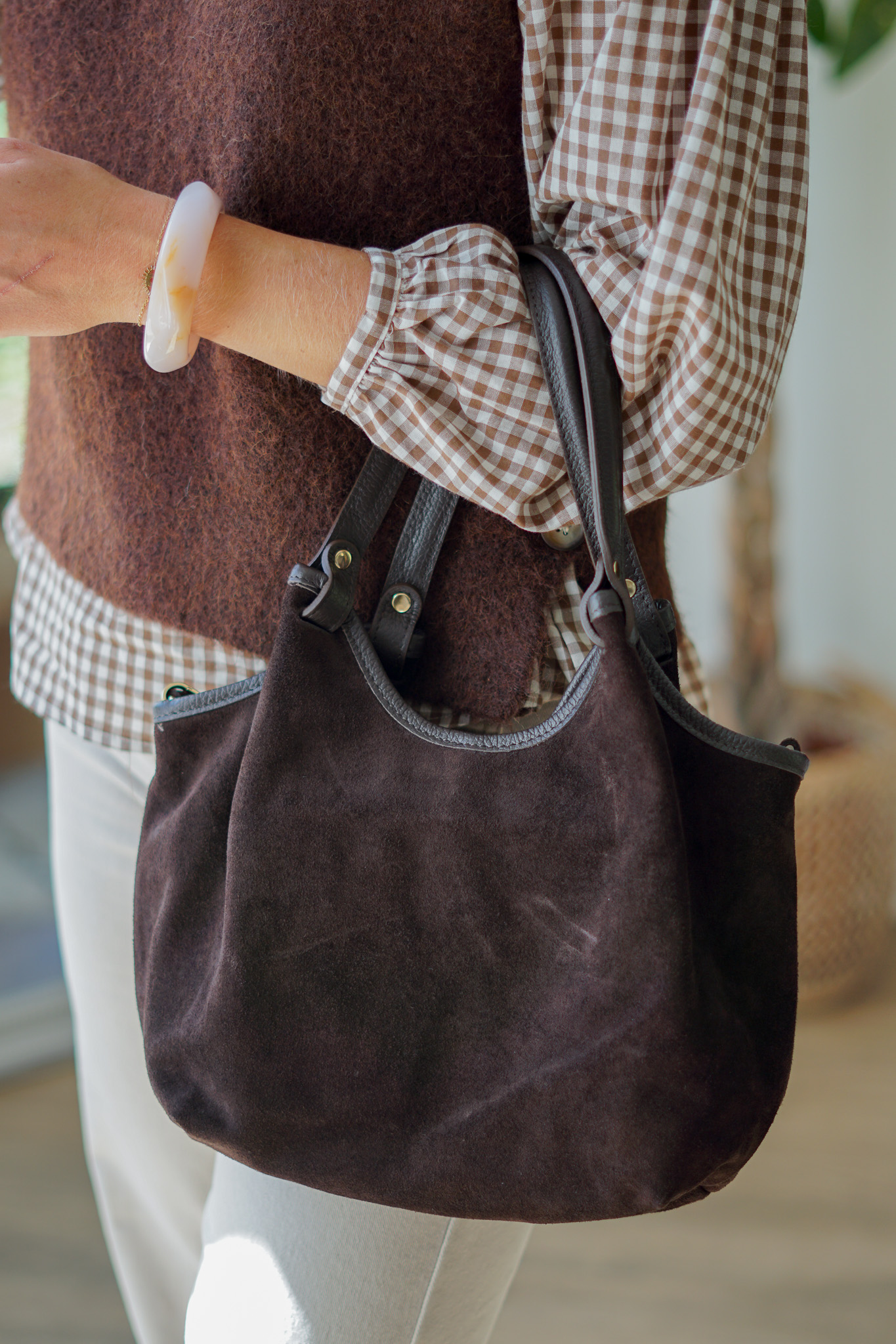 Sac à main double matière: daim et cuir 2 anses pour un porté épaule ou bandoulière Fabriqué en Italie COMPOSITION: 100% Cuir de vachette