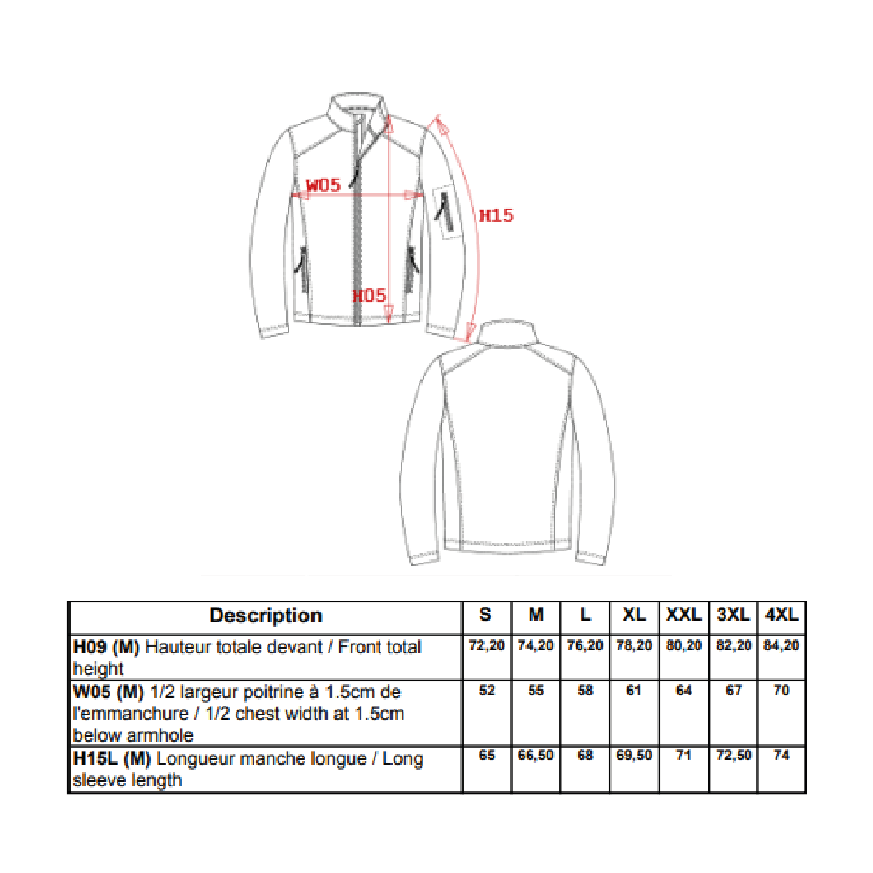 Description : Couche intérieure : micropolaire. Coupe cintrée. Fermeture zippée. 2 poches zippées sur le devant et une poche zippée sur manche gauche.