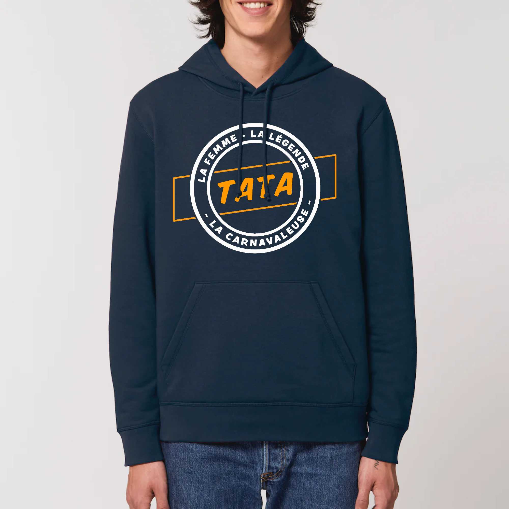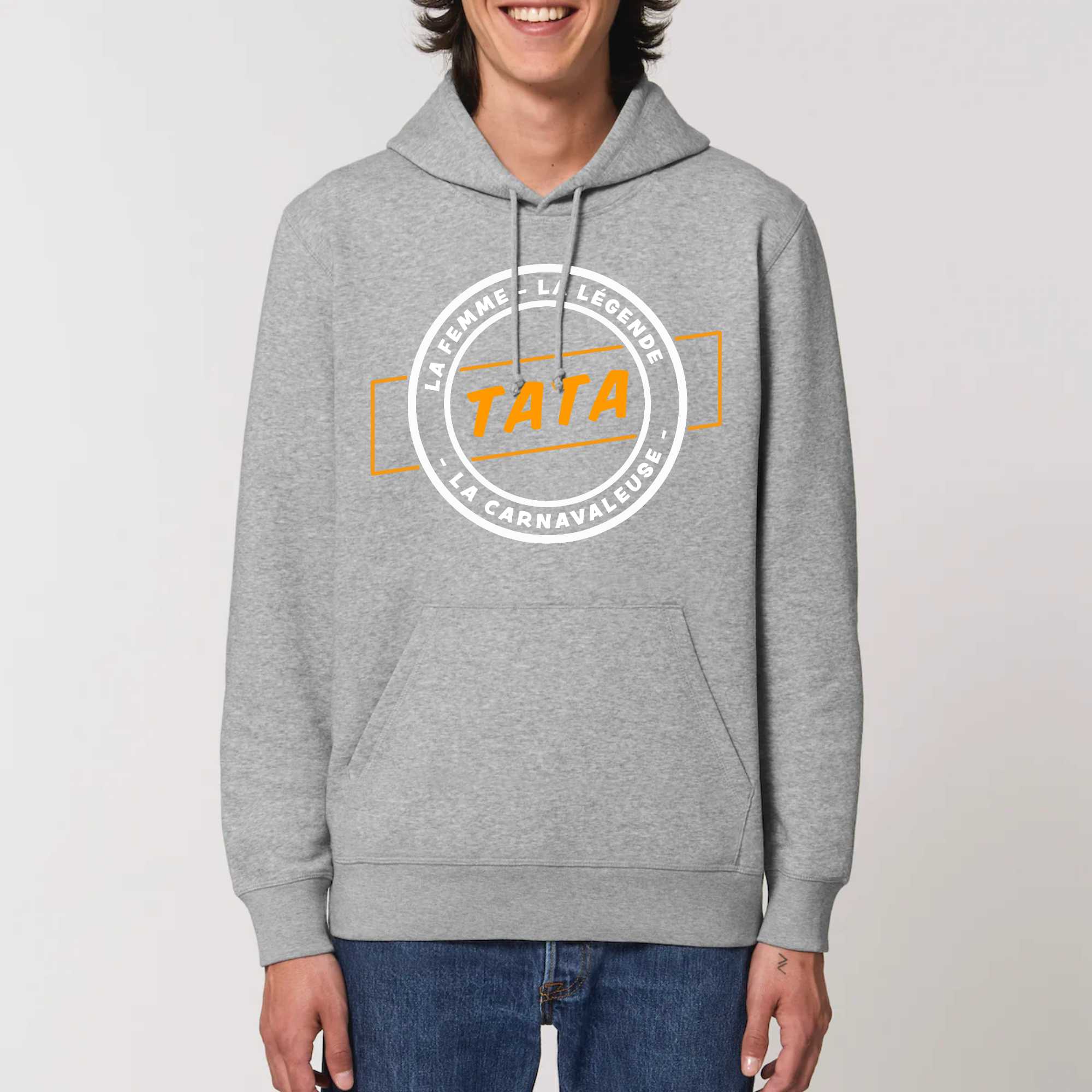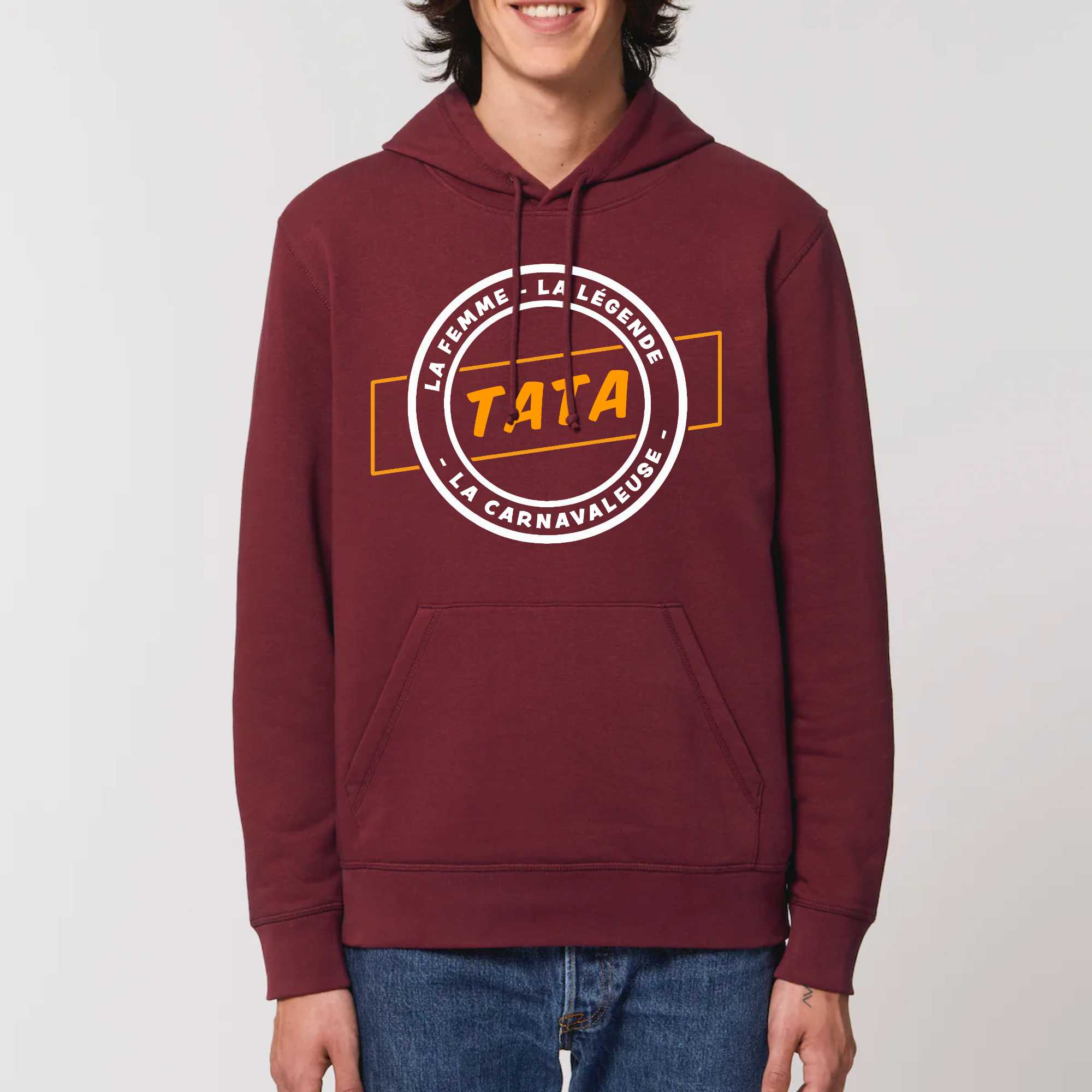 Notre Sweat à capuche léger avec poche ventrale « Tata la femme la légende la carnavaleuse », un Sweat à capuche écoresponsable et résistant