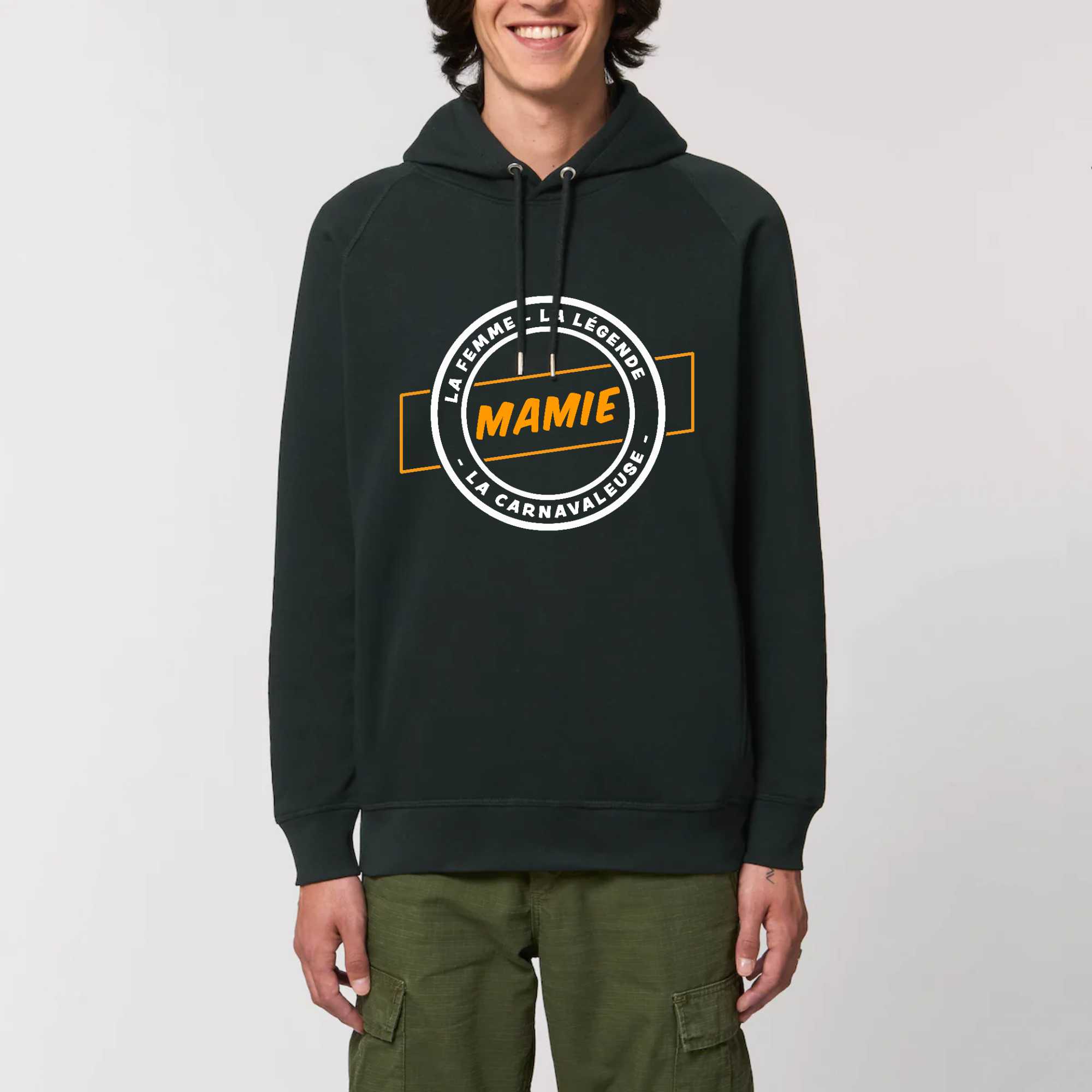 Notre Sweat à capuche avec poches latérales « Mamie la femme la légende la carnavaleuse », un Sweat à capuche écoresponsable et résistant