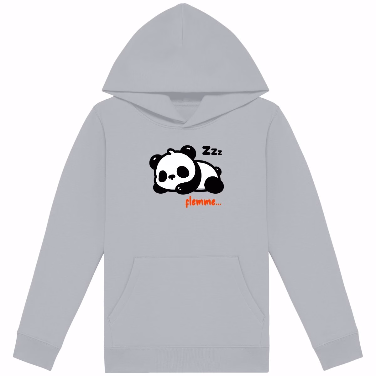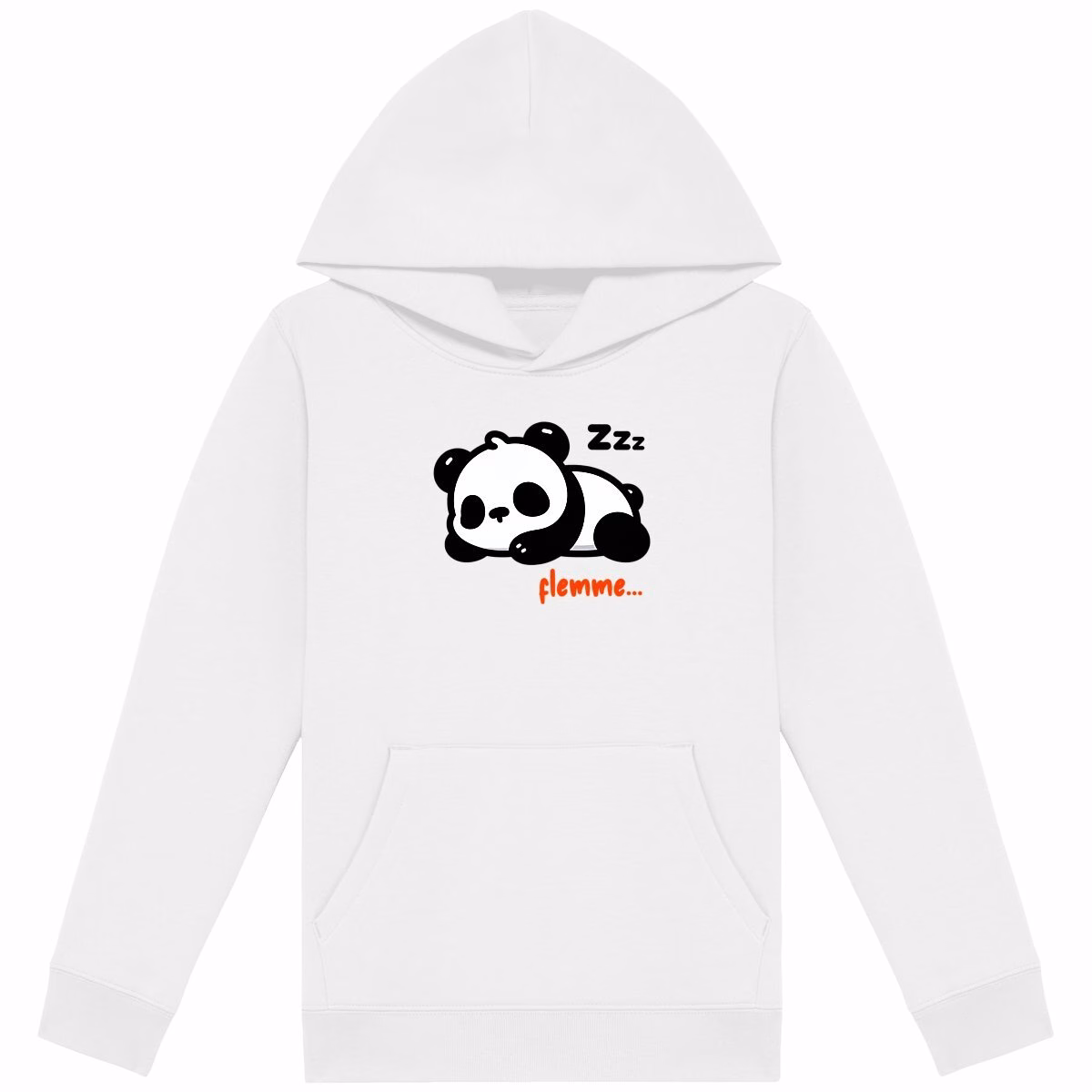 Sweat panda à capuche enfant entièrement écoresponsable, en coton bio et polyester recyclé, imprimé en France, coupe unisexe, idéal pour une mode enfant éthique confortable et durable au quotidien.