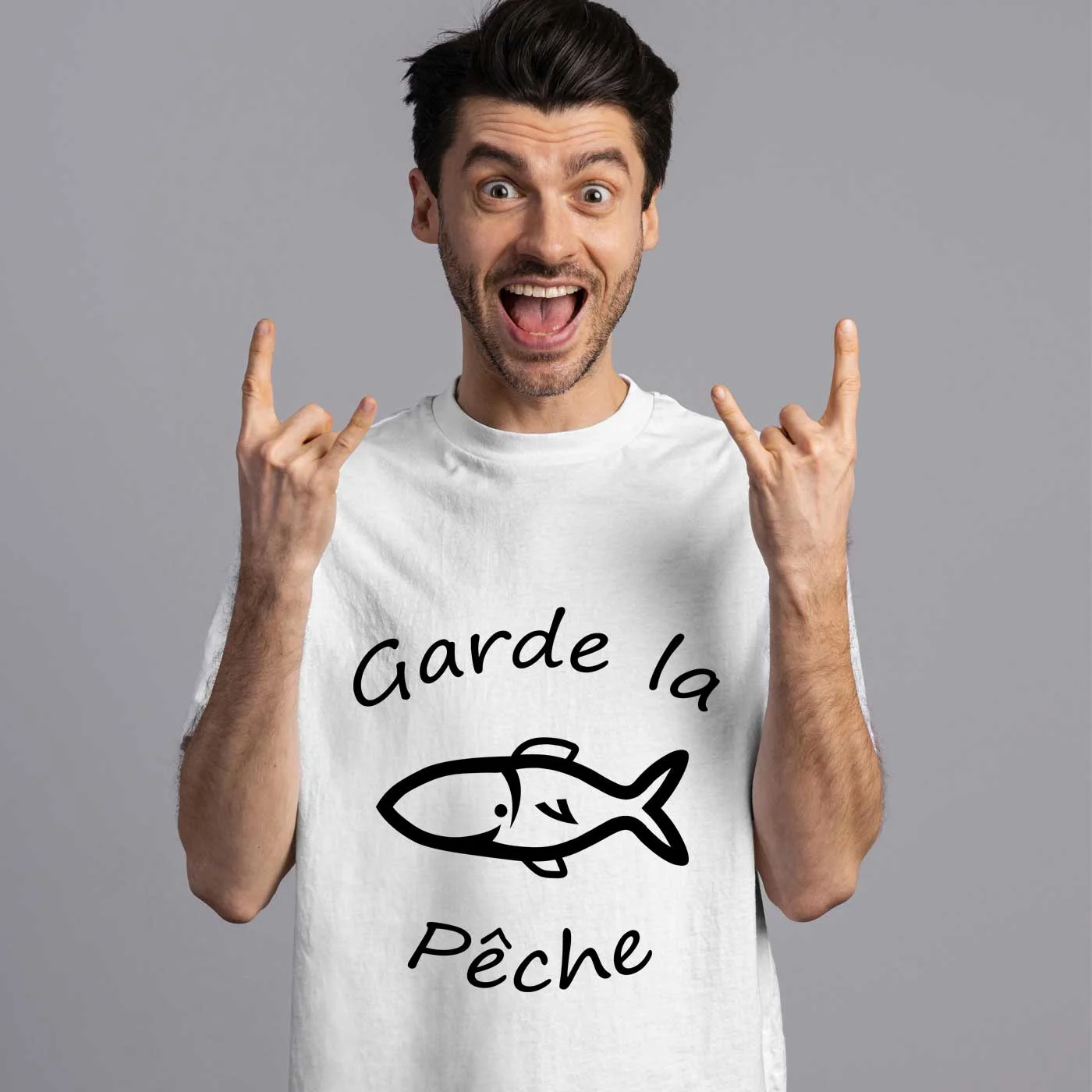 Nous vous proposons ce T-shirt pour Homme intitulé « Garde la pêche ».