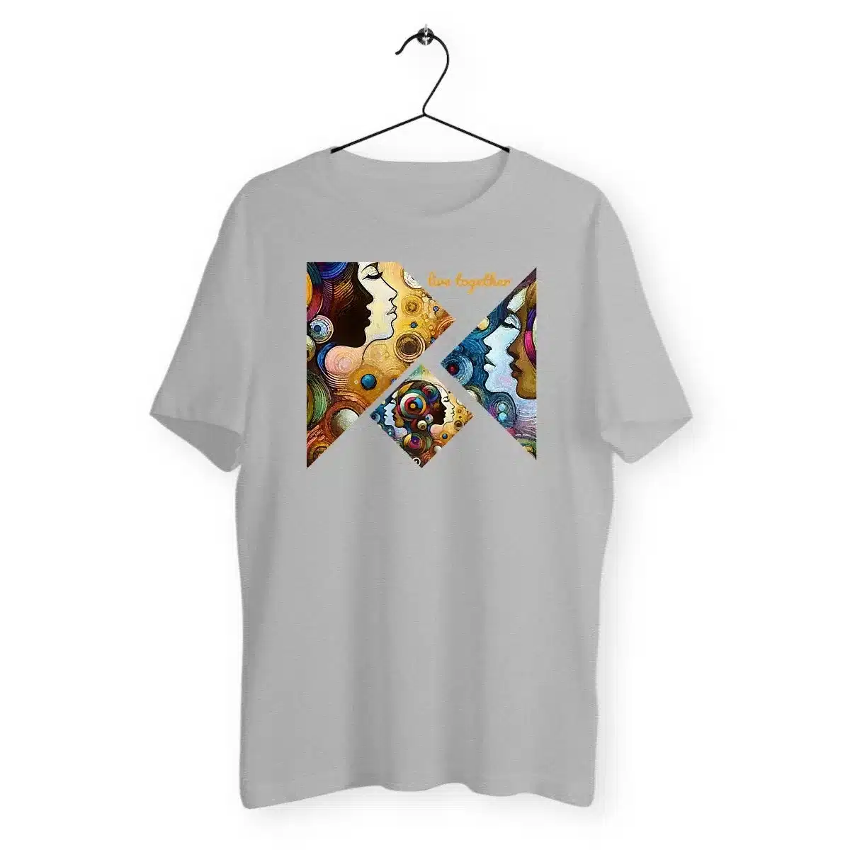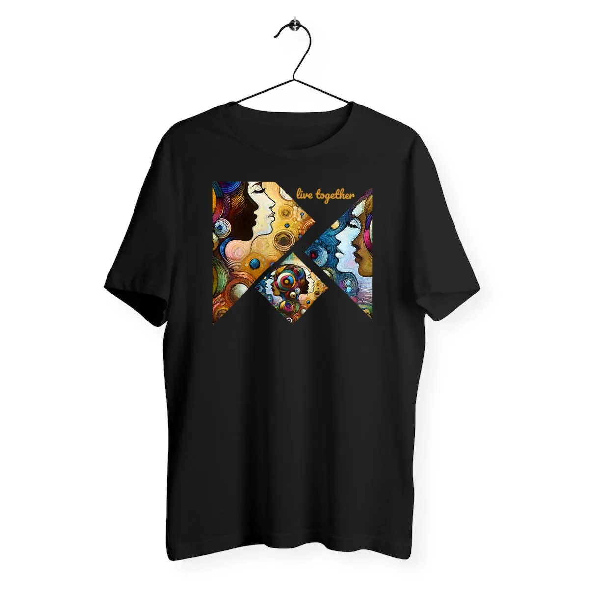 T-shirt vegan unisexe léger en 100% coton bio, message engagé Live together, coupe inclusive du XS au 3XL, produit éthique et écologique avec emballage sans plastique.