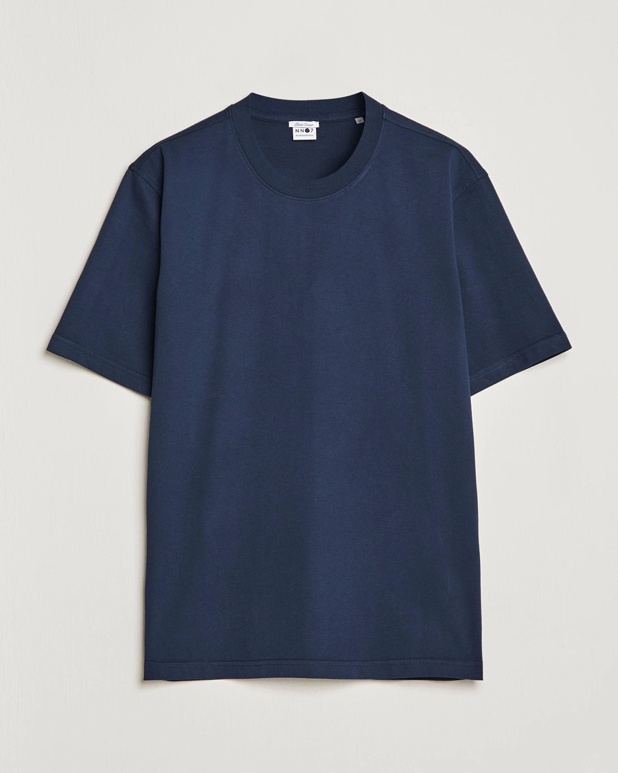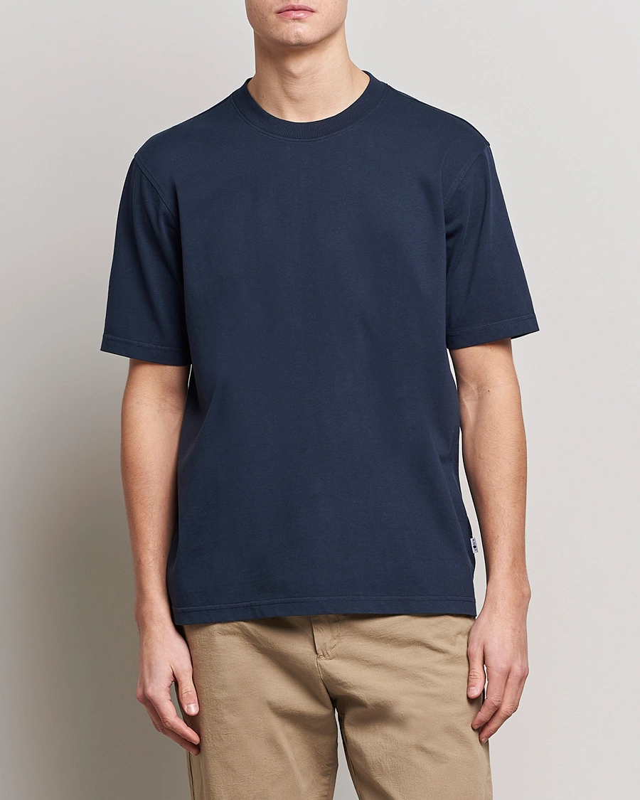 T-shirt décontracté en jersey de coton Pima fin. Il est orné de doubles surpiqûres et d’un bord-côte à l’encolure.
